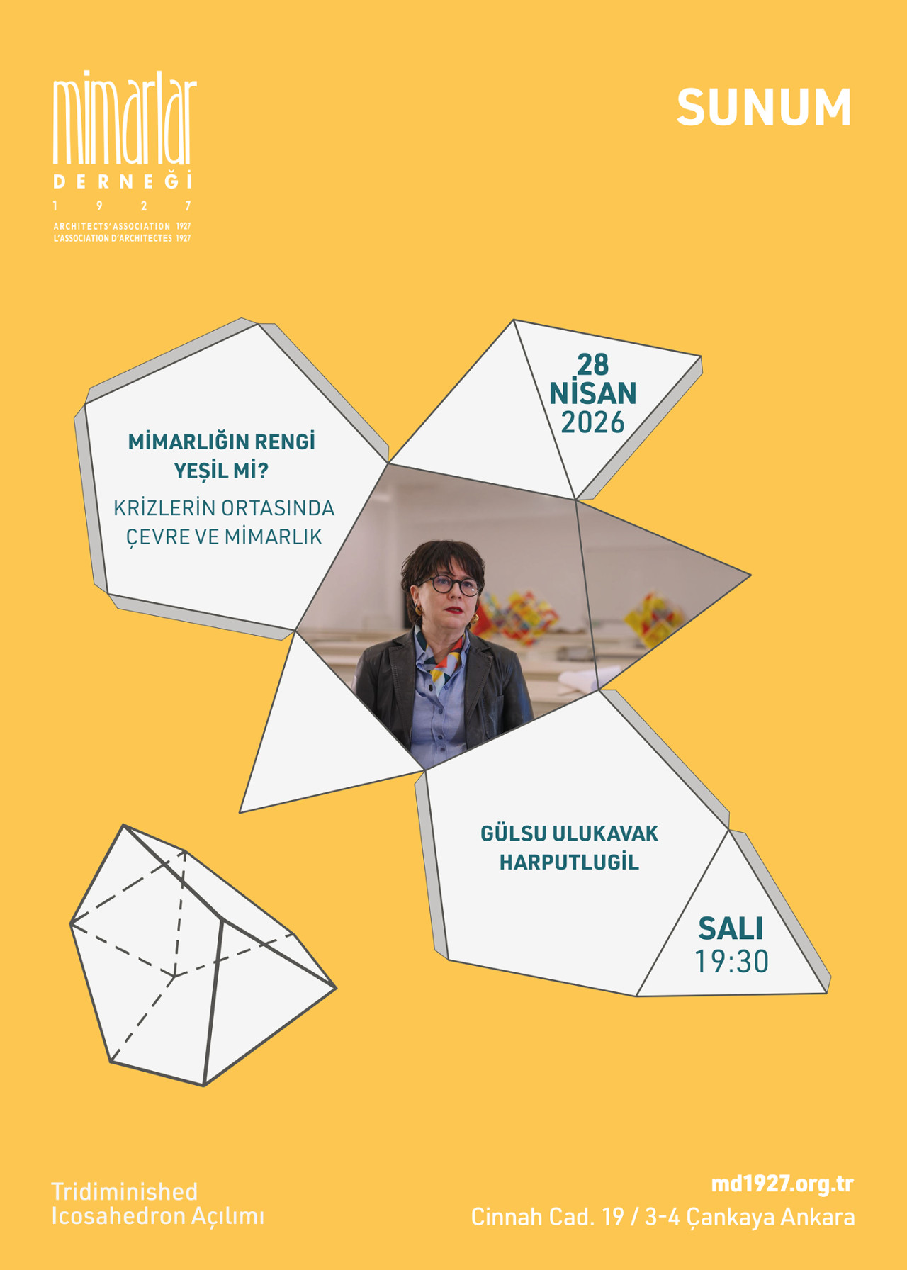 Mimarlar Derneği 1927, Türkiye’de en eski bağımsız mimarlık meslek kuruluşudur. Cumhuriyet’in ilanından dört yıl sonra “Türk Mimarlar Cemiyeti” adıyla kurulmuş ve farklı isimler altında günümüze dek faaliyetlerini sürdürmüştür. Dünya Mimarlar Birliği’nin kurulmasına katkıda bulunmuş (UIA 1948), TMMOB ve Mimarlar Odası’nın kuruluş sürecine tüm imkanlarıyla destek olmuştur. Mimarlar Odası’nın 1954’de kurulmasının ardından, mesleki görevini kültürel ve sosyal programlarla sınırlamış olan Dernek, etkinliklerine Ankara’nın modernist bir ikon yapısı olan Cinnah 19’daki yeni mekanında devam ediyor.
